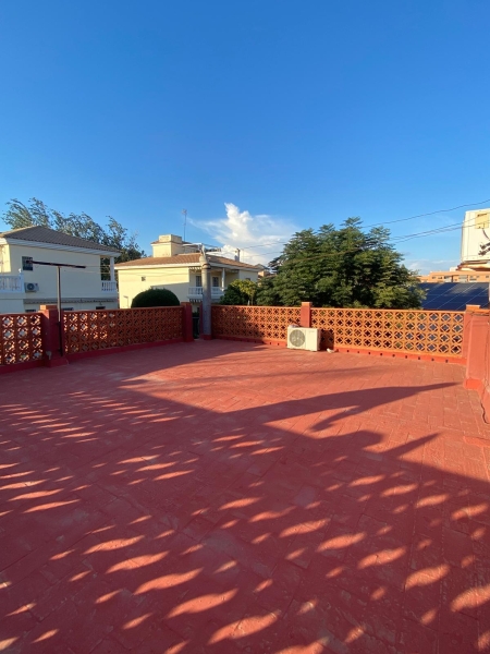 La segunda vivienda también ofrece tres dormitorios, armarios empotrados y aire acondicionado para esos días calurosos. Su salón comedor tiene acceso directo al jardín, lo que permite disfrutar del aire libre en cualquier momento. Con una distribución práctica y funcional, incluye un baño completo en la planta alta y una cocina amueblada.
